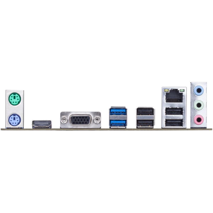 2 x PS/2, 4 x USB 2.0, 2 x USB 3.2 Gen1, VGA, HDMI, RJ-45
