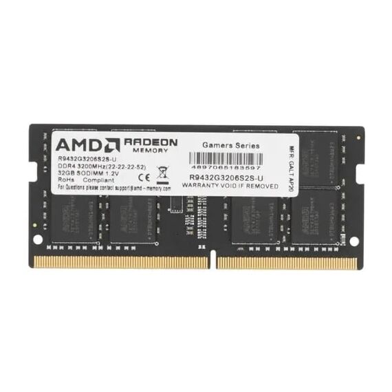 ОЗУ AMD Radeon R9 Gamer Series Gaming Memory R9432G3206S2S-U 32GB DDR4 3200 SO DIMM Non-ECC, CL16, 1.2V, RTL
