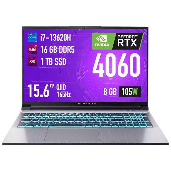 Ноутбук Machenike L15 Star 2K L (JJ00GA00FRU) 16" i7-13620H 10 ядер 16 Гб DDR5 1 Тб SSD M.2 Geforce RTX 4060 8 Гб No OS RusEng Серебро 2.3 кг