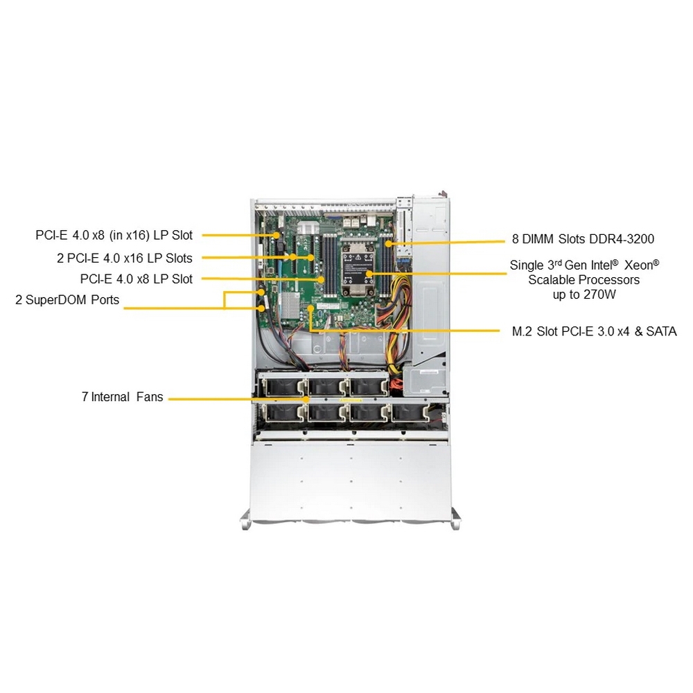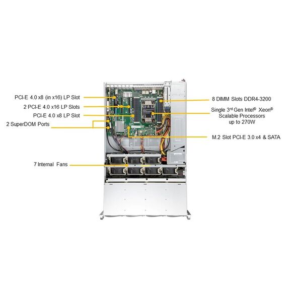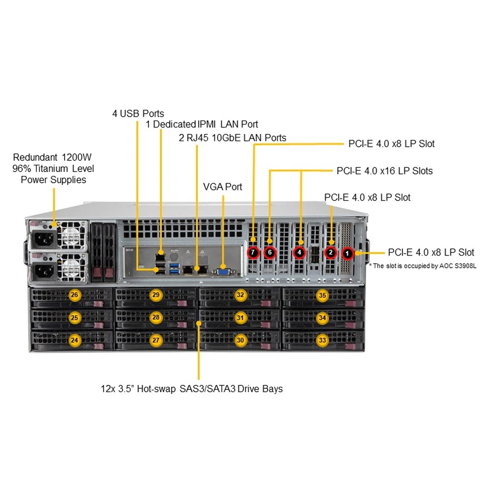 Корпус SuperMicro SSG-540P-E1CTR36H Storage 4U/Single Socket P+ (LGA-4189)/UP to 3TB/2 PCI-E 4.0 x16 (LP) slots/2x 10GbE RJ45/36x Hot-swap 3.5"