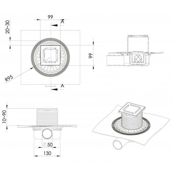 прокладка гидроизолирующая, фланец, решетка, сифон