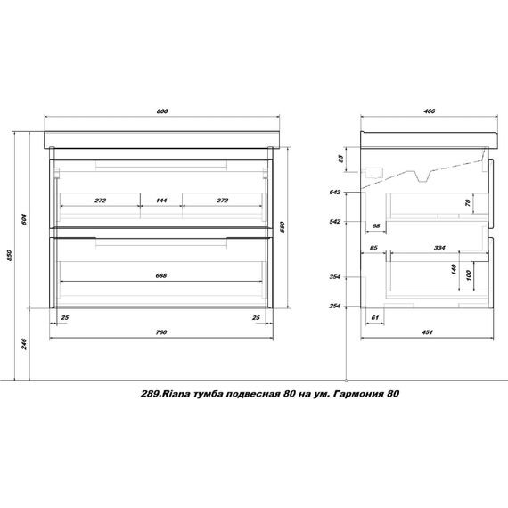 Комплект тумба подвесная Sanstar Riana 80 с раковиной Гармония 80 289.1-1.5.1.К