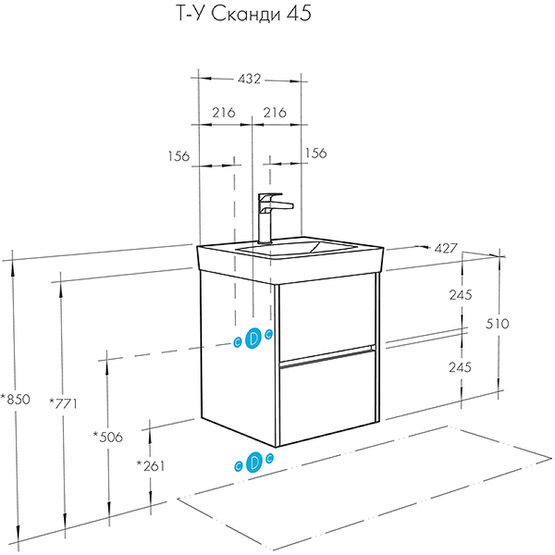 Тумба с раковиной Aquaton Сканди 45 1A2516K0SD010 подвесная.
