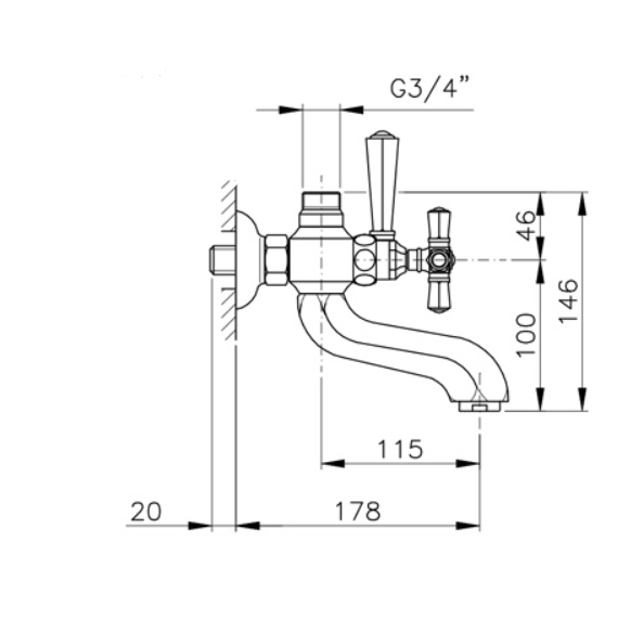 Смеситель для ванны и душа NICOLAZZI 1900CR05 teide metal под душевую стойку хром