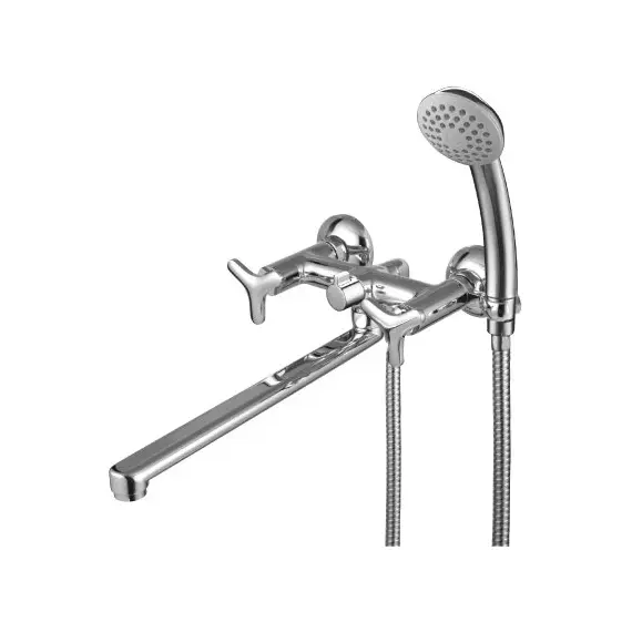В комплект поставки входят эксцентрики, душевой шланг, душевая лейка, аэратор, держатель для душа и переключатель потоков.