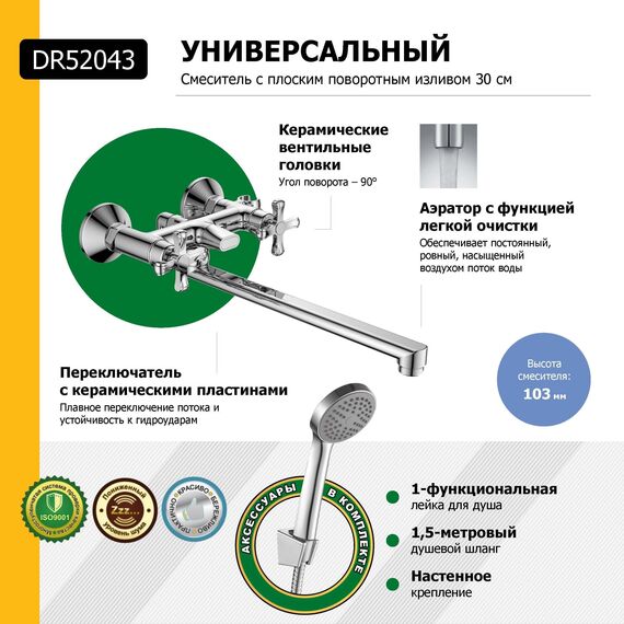 Смеситель универсальный DECOROOM (DR52043) двуручный с поворот. излив. 300мм.. хром