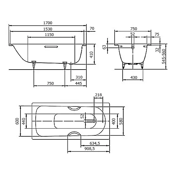 Ванна KALDEWEI Saniform Plus 112600010001 170x75 standard mod. 373-1