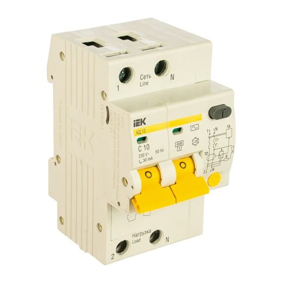 Выключатель IEK MAD10-2-010-C-030 автом. дифф. тока АД12 10A тип C 4.5kA 30мА AC 2П 230В 3мод белый (упак. 1шт)