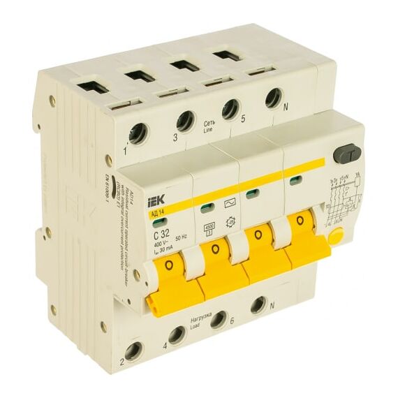 Выключатель IEK MAD10-4-032-C-030 автом. дифф. тока АД14 32A тип C 4.5kA 30мА AC 4П 400В 5мод белый (упак. 1шт)