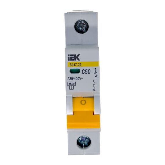 Выключатель IEK ВА47-29 (MVA20-1-050-C) автоматический 50A тип C 4.5kA 1П 230/400В 1мод белый (упак. 1шт)