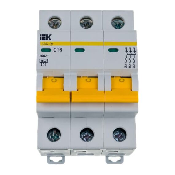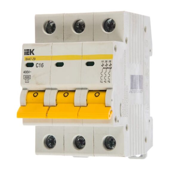 Выключатель IEK ВА47-29 (MVA20-3-016-C) автоматический 16A тип C 4.5kA 3П 400В 3мод белый (упак. 1шт)