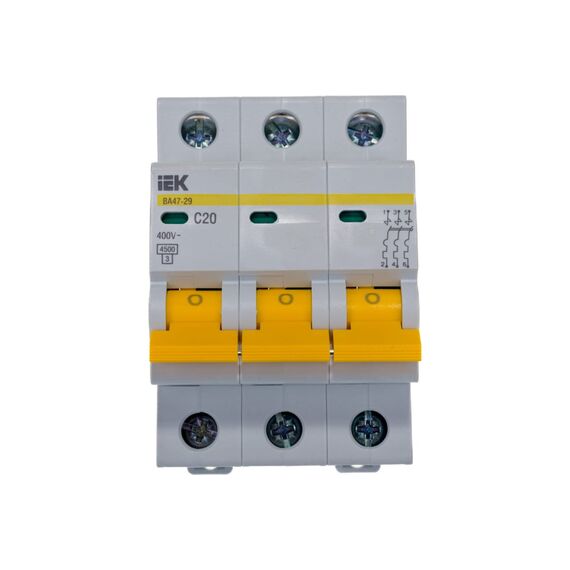 Выключатель IEK ВА47-29 (MVA20-3-020-C) автоматический 20A тип C 4.5kA 3П 400В 3мод белый (упак. 1шт)